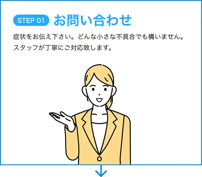 万が一工事による不具合が起きた場合に、再修理の作業料、技術料を無料で行わせていただきます。保証書は大切に保管下さい。
